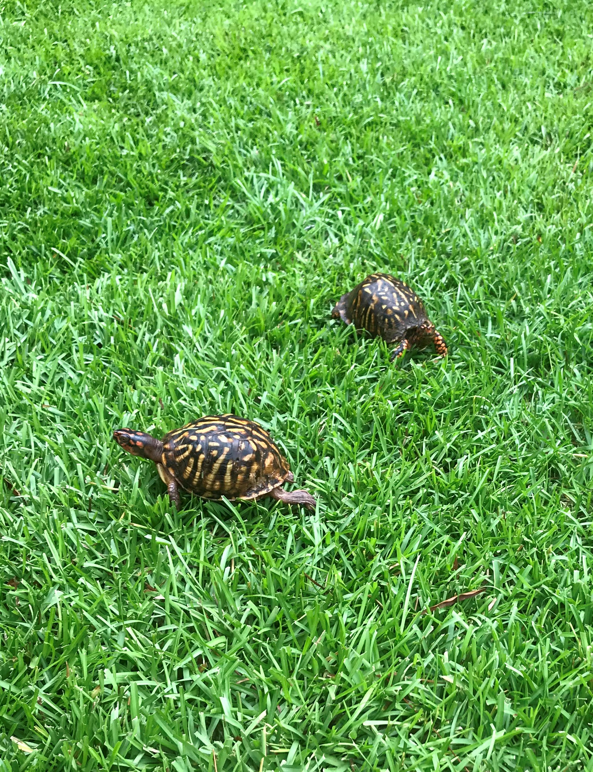 Common throughout the eastern United States, box turtles are found in a variety of habitats like open hardwood forests and fields or wetland edges. They also do quite well in my backyard. They are survivors that can apparently adapt to an unconventional habitat, unlike their cousin the gopher tortoise.