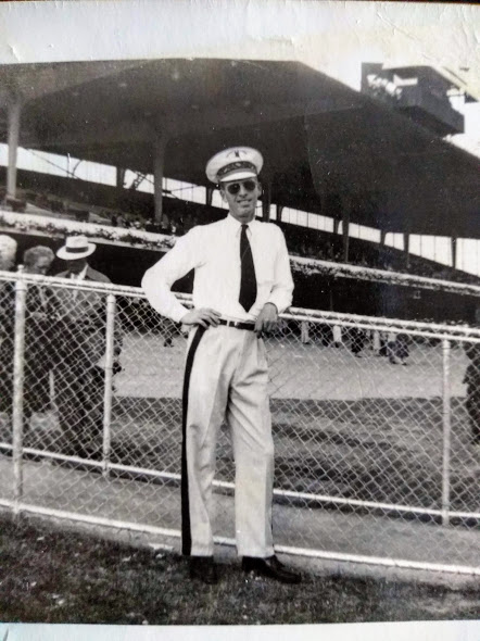 The starting box, where my dad worked, consisted of a long, low unit with eight greyhound sized stalls. The handlers walked the dogs to the box on a leash and my dad helped them remove the leash and stuff dogs in the box. Each dog wore a colorful vest with a number from one to eight on it. Once the dogs were loaded, a mechanical arm was activated and a fuzzy, white artificial rabbit began its run around the track. My recollection is that the starter held a button in his hand that was connected to the dog box by a cord. When the mechanical rabbit was in front of the box at a spot the starter was looking for, he pushed the button which caused the entire front of the box to burst up and expose all of the dogs to the rabbit at the same time. When they bolted out in their colorful vests with their front legs extended and their necks stretched out toward their quarry, it was the most exciting thing I had ever seen. They raced around the track chasing the rabbit which glided along its arm on the inside rail.
