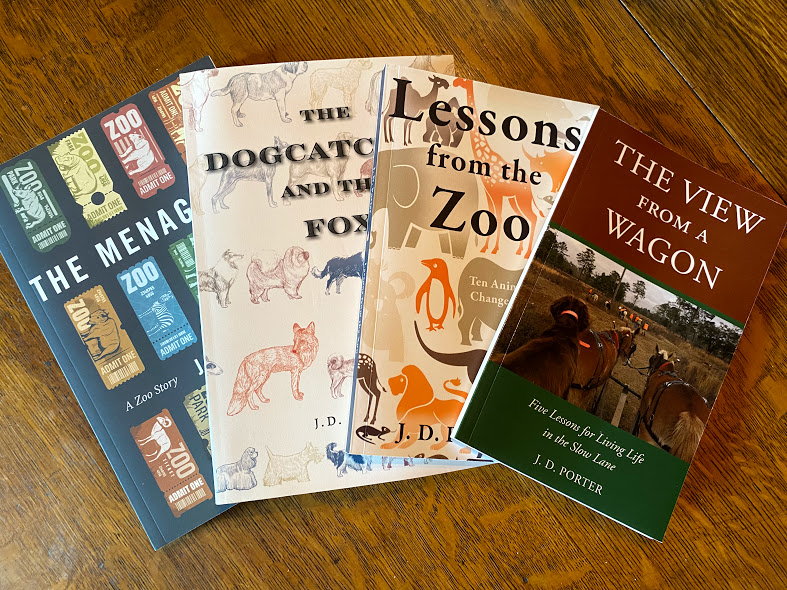 And so, I write—long stories (novels) and short stories (newspaper articles); fiction (made-up stuff) and nonfiction (mostly true). I write about animals, nature, and the world as I see it. I have a collection of essays that I will publish as a book this spring. I have a novel that is being reviewed by my editor and should be ready for an agent later this year. And I have an idea for a nonfiction book on the history and evolution of the American zoo. These aren’t exactly urgent projects, but at my age, I need to keep writing. My library’s not burning yet, but I think I smell smoke.