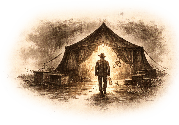 The traveling circus rolls into the city with blazing lights and restless crowds, offering a brief escape from the suffocating heat and uncertainty of the times.